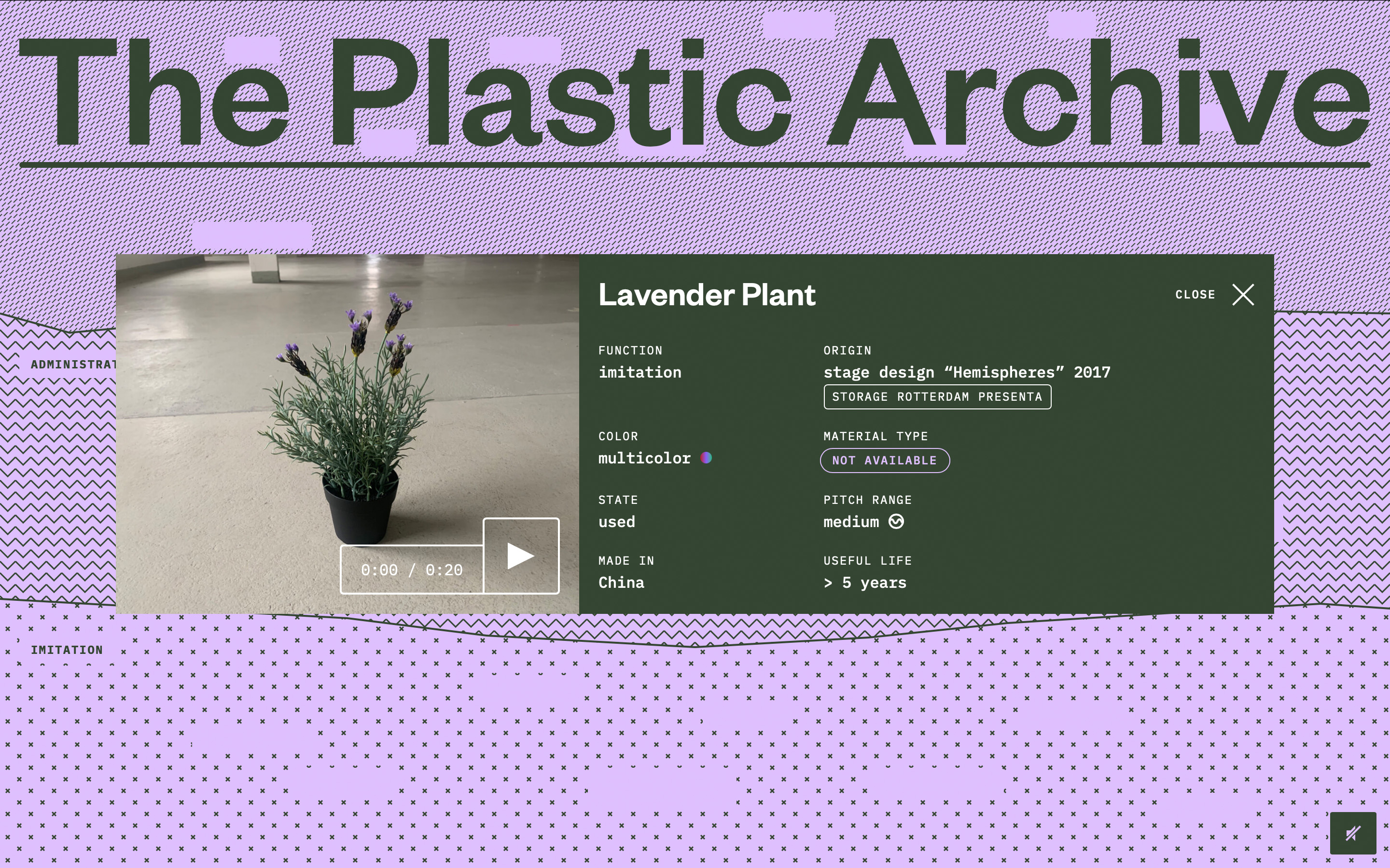 Das physische Archiv mit seinen gefundenen, geliehenen, geschenkten und teilweise geklauten Kunststoffobjekten ist die Basis des Projekts. Die akustischen Eigenschaften jedes Exponats sind in Form von Soundsamples konserviert.